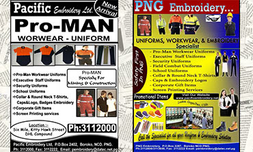 Pacific Safety Wear is a manufacturer, wholesaler, retailer and distributor of textile products and Embroidery Products. The main products include corporate/company uniforms, heavy duty protective clothing, industrial safety wears, office uniforms, Promotional items, T-Shirts, Caps, Mugs, Lanyard and linen for the hotel & hospitality industry. Starting from a very humble beginning, the company has grown to become the leading uniforms manufacturer and largest Embroidery company in Papua New Guinea controlling over 60% of the market. with most advance Hi-Tech Japanese Embroidery machinery. The company operates from its new and larger premises, at Morea Tobu Rd, DHL Compound and Dogura Place Six mile.